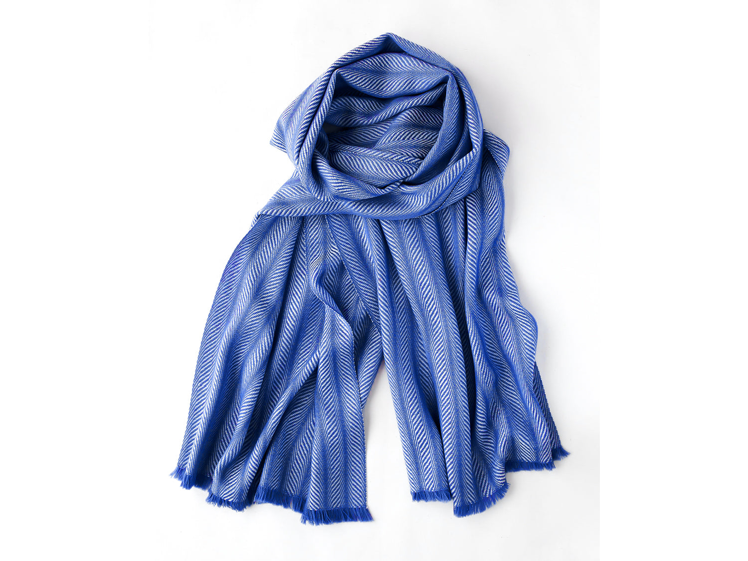 Blue and White 100% Merino Lambswool Stole by Lisbeth Mulcahy, woven in Ireland. The Lambswool Stole is designed for any kind of formal occasion, whether an evening at the opera or a wedding, or alternatively as an outsize scarf....Read more