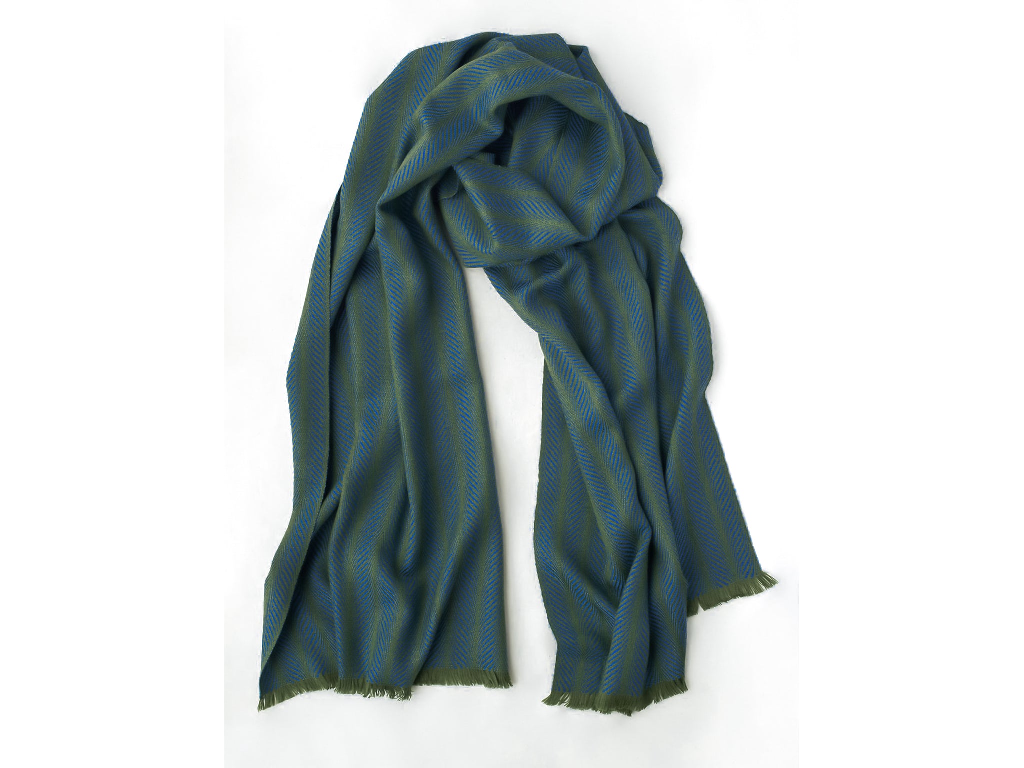 Green and Light Green 100% Merino Lambswool Stole by Lisbeth Mulcahy, woven in Ireland.