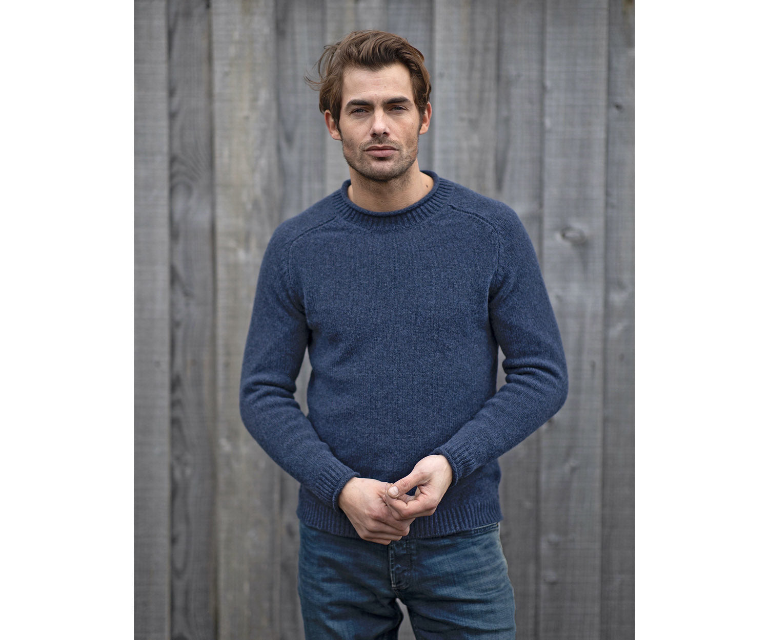 FISHERMAN: Saddle Shoulder Crew Neck Sweater with Rolled Neck and Sleeves. Colour: Dark Indigo Wool Blend: 95% Mulesing Free Merino Wool and 5% Cashmere Product Care: Handwash or dry clean. Crafted in Ireland, hand linked and finished by...Read more