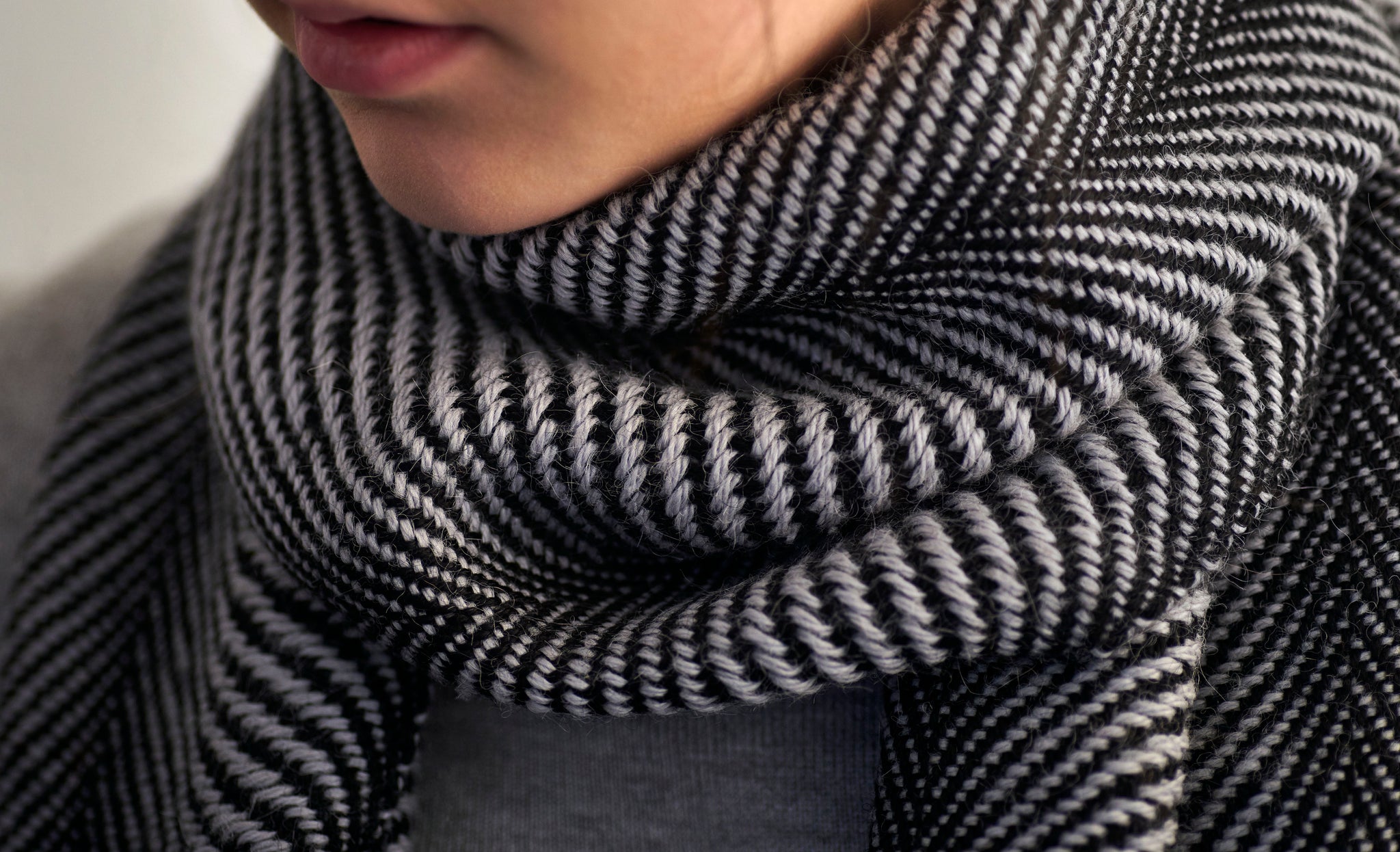 The Alpaca Undulating Scarf is a classic, designed by Lisbeth Mulcahy in 1986 using an undulating herringbone pattern. It is updated in terms of colour every year since. It is a luxurious scarf, loved by men and women alike and comes in classic grey or black with a limited range of muted colours.